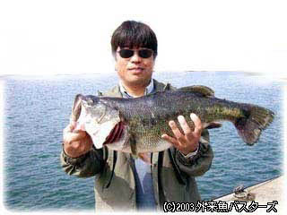 湖西のポイントは、非常に魚影が薄い中、みやけさんが見事61センチの大バスを釣り上げました。北湖にも、南湖同様60オーバーのバスがいるようです。しかし、この後事件は起こりました。今回、滋賀県水産試験場への引き渡しのためにバスを生かしてあったのですが、たった数分間目を離したスキに、ストリンガーにつないであったこの61センチのバスを何者かが逃がしたのです。